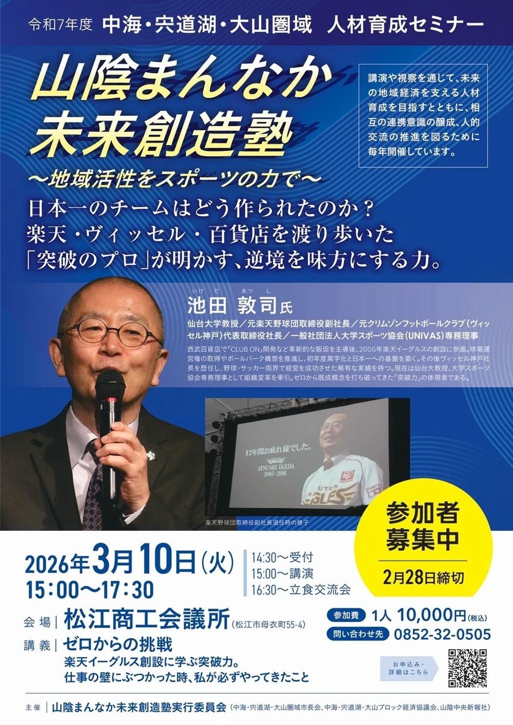 「山陰まんなか未来創造塾~地域活性をスポーツの力で~」開催のご案内