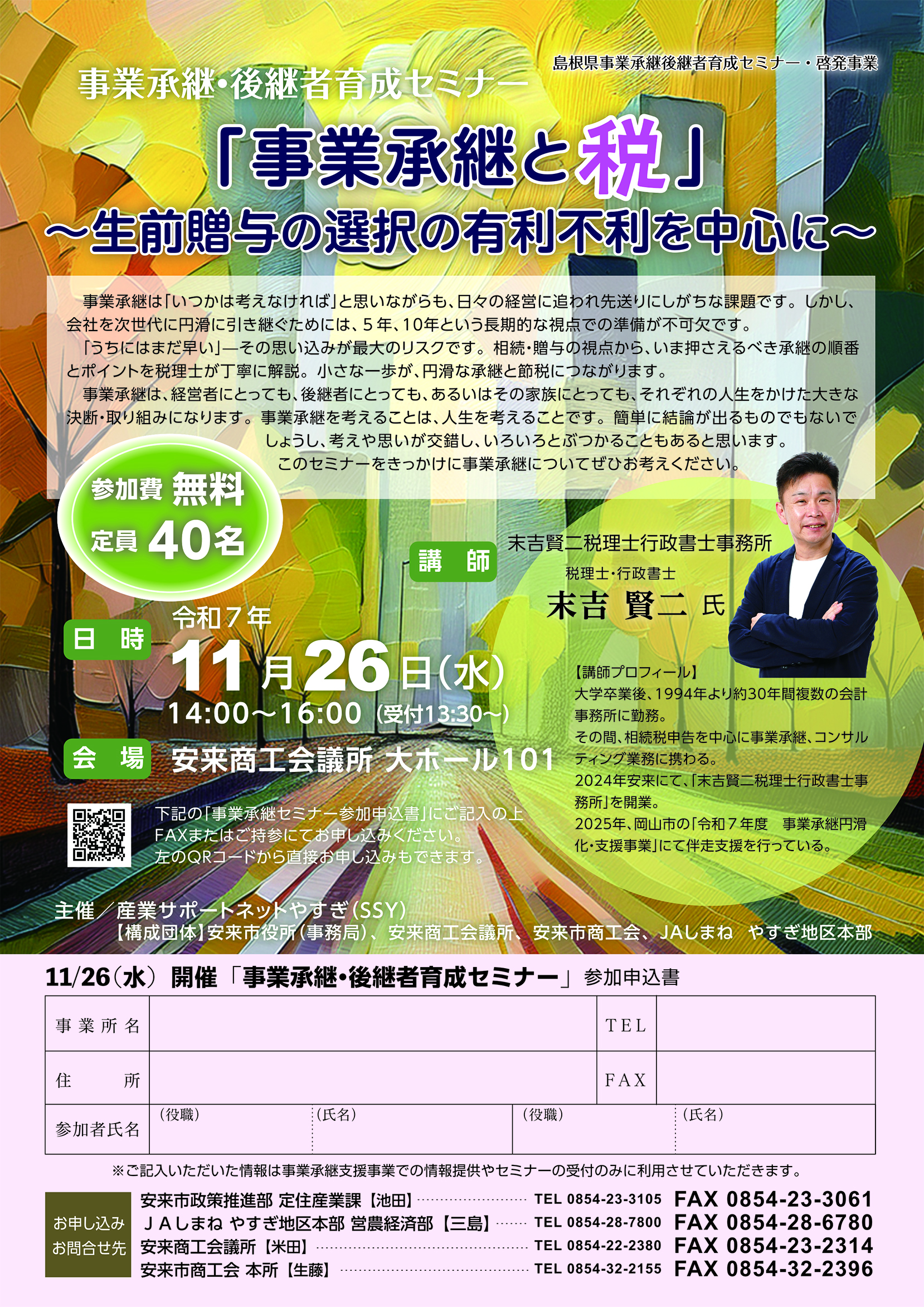 「事業承継・後継者育成セミナー」の参加者を募集します